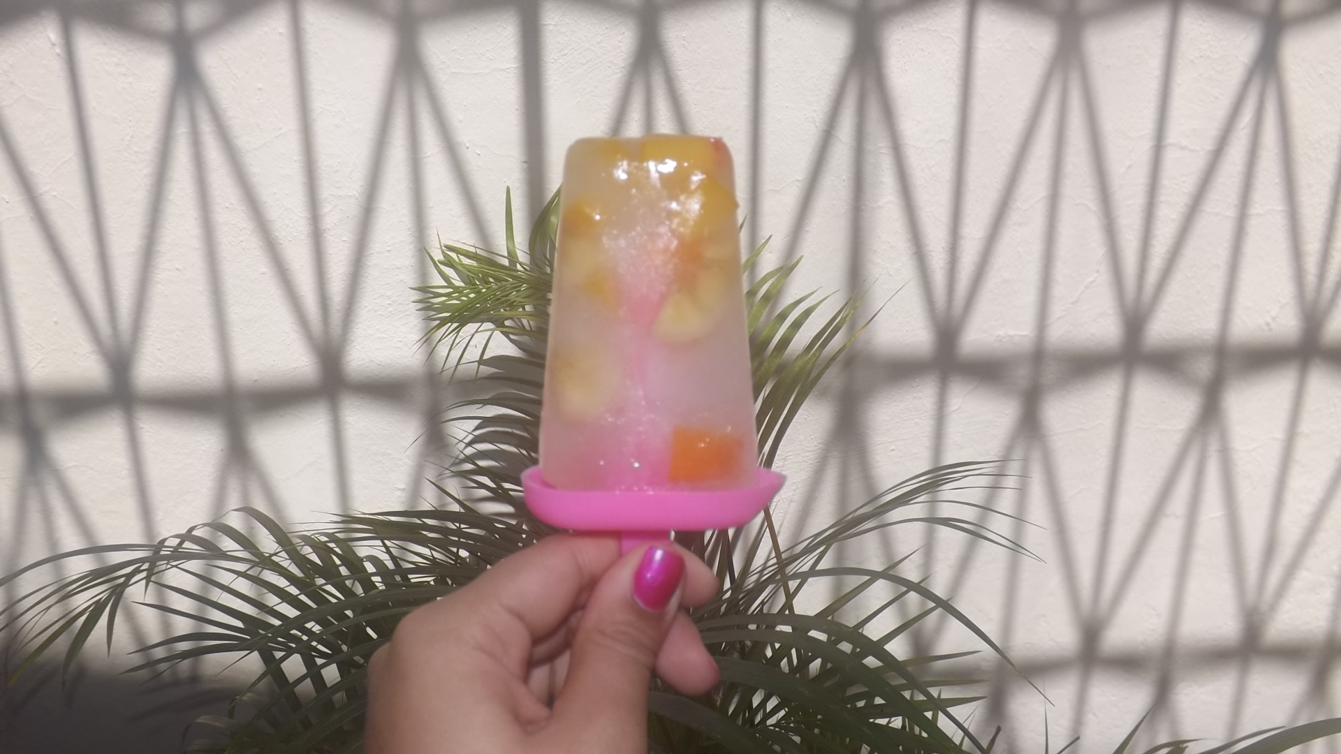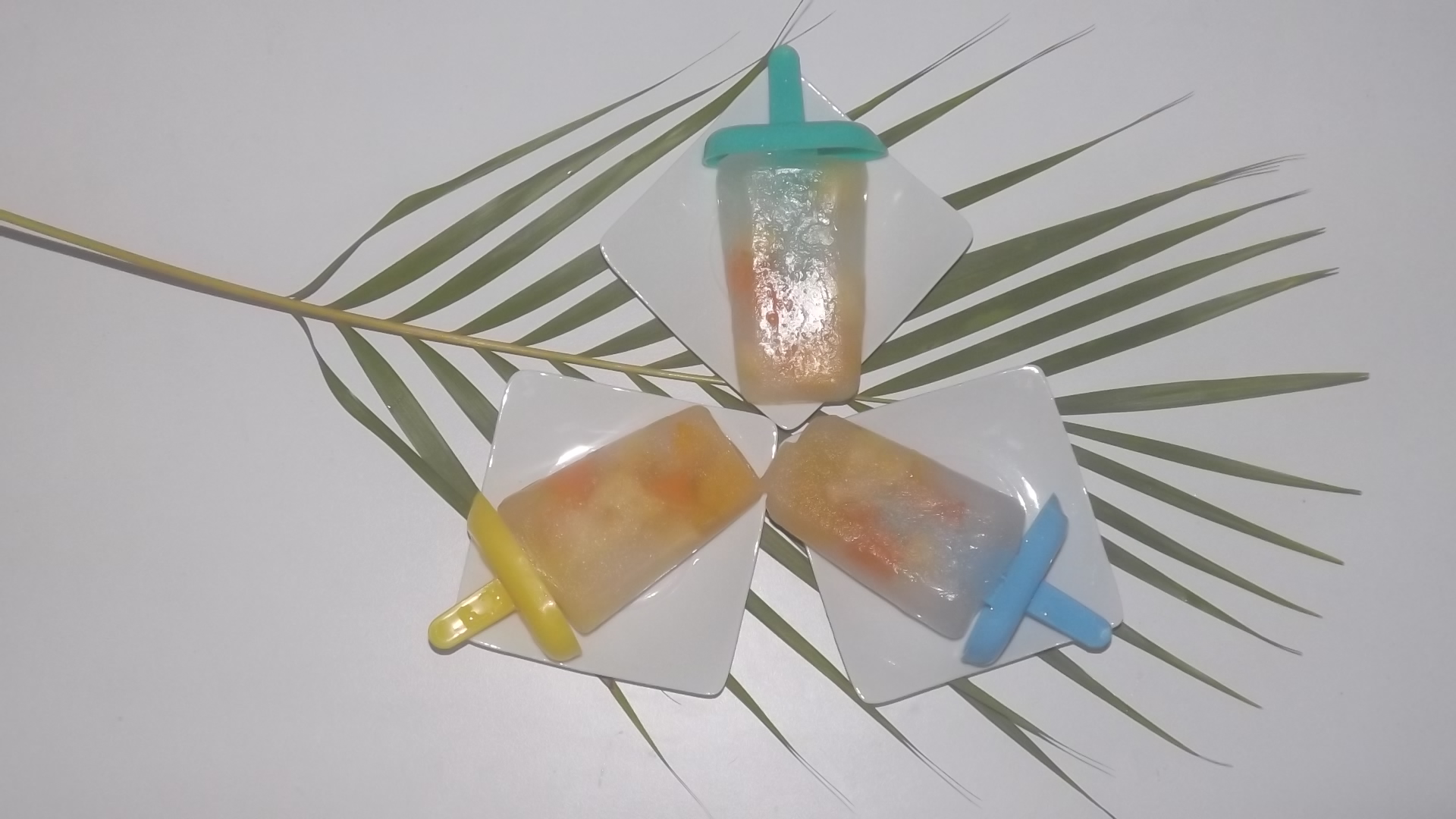 En un vaso o recipiente para helados colocar el jugo de limón o naranja, luego picar en cuadros las frutas de tu preferencia y agregarlas al jugo. LLevar al congelador y disfrutar de tu helado cuando esté listo.
